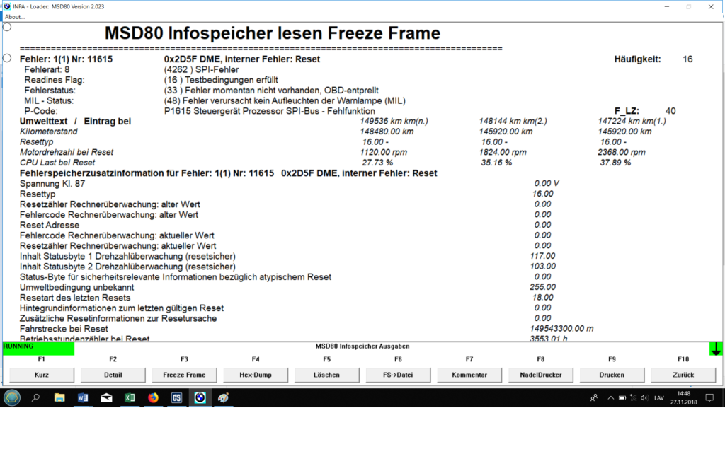 Today I connected INPA. Outside temperature -3 oC. The car has been staying outside for more than 12 hours. Before starting I checked the rail pressure. Both: low-pressure and rail pressures were around 4000 hPa. It looks that no injector (in a closed condition) is leaking. Two error messages recorded in the DME error message memory list: