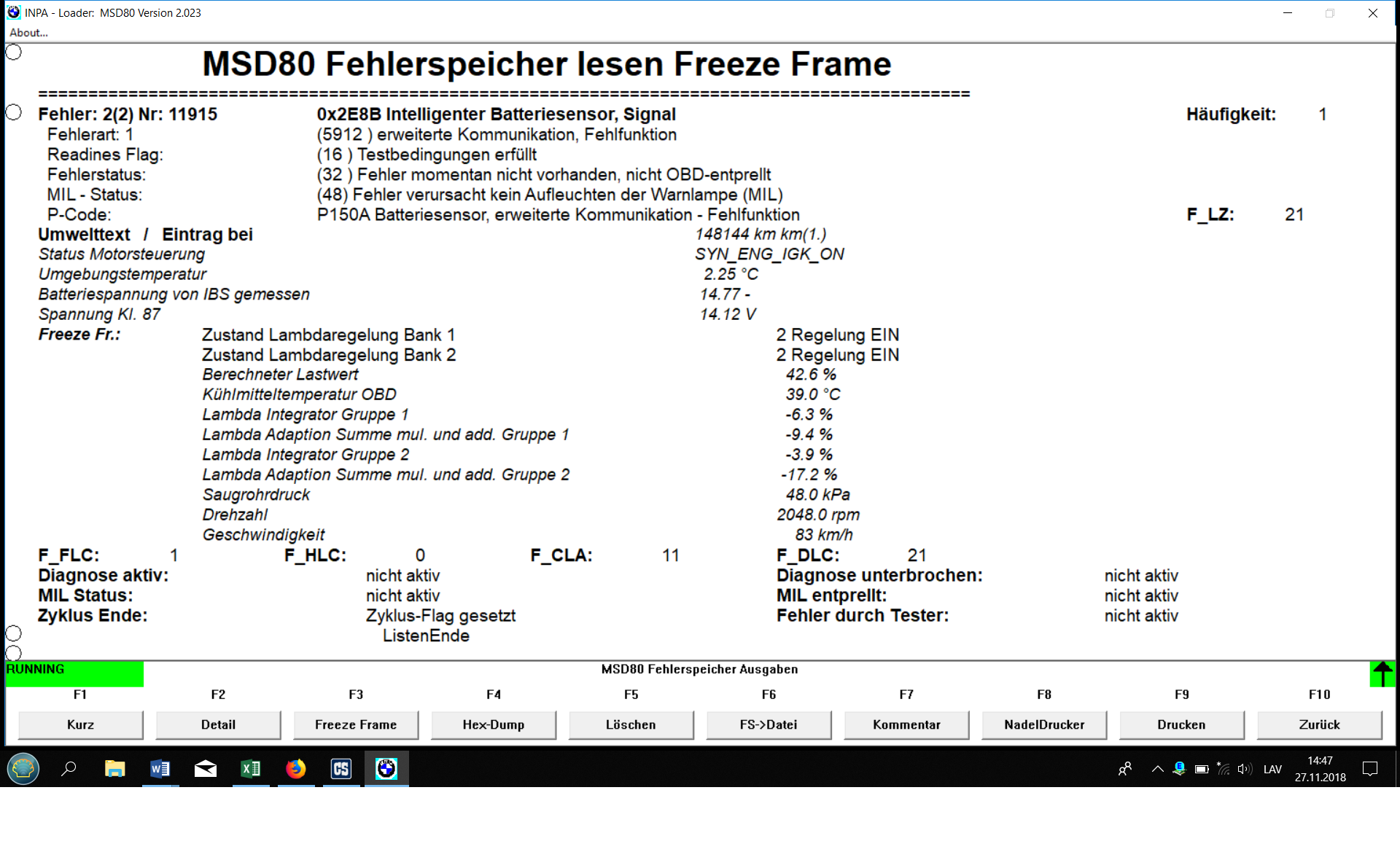 And finally – unfortunately, the dealer center would not be able to identify this problem, because INPA is prohibited there. Instead, ISTA D “don’t see’s” not the Info list of the error messages, not the energetical balance of the battery and other hidden data. Most probably, the dealer would order to replace DME. After replacing DME the problem would disappear because IBS registers of new DME would be cleaned (correct). Yes, the problem would be eliminated for some time (till IBS would notice, that SOH of the battery is low), EUR 1500 would be spent unnecessary, and after a certain time – the problem with the performance of the battery would restore.