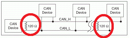 Basic unit terminal resistor (2 pieces, one from CANH to GND, second – from CANL to +5V) are with a smaller denomination (820 Ohm), in other units: each 12 KOhm.