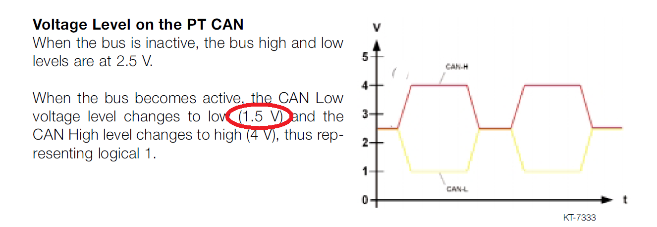 - when BUS is active, CANH has to be +4,0 .. 4,5V; CANL has to be +0,5 .. 1,0V