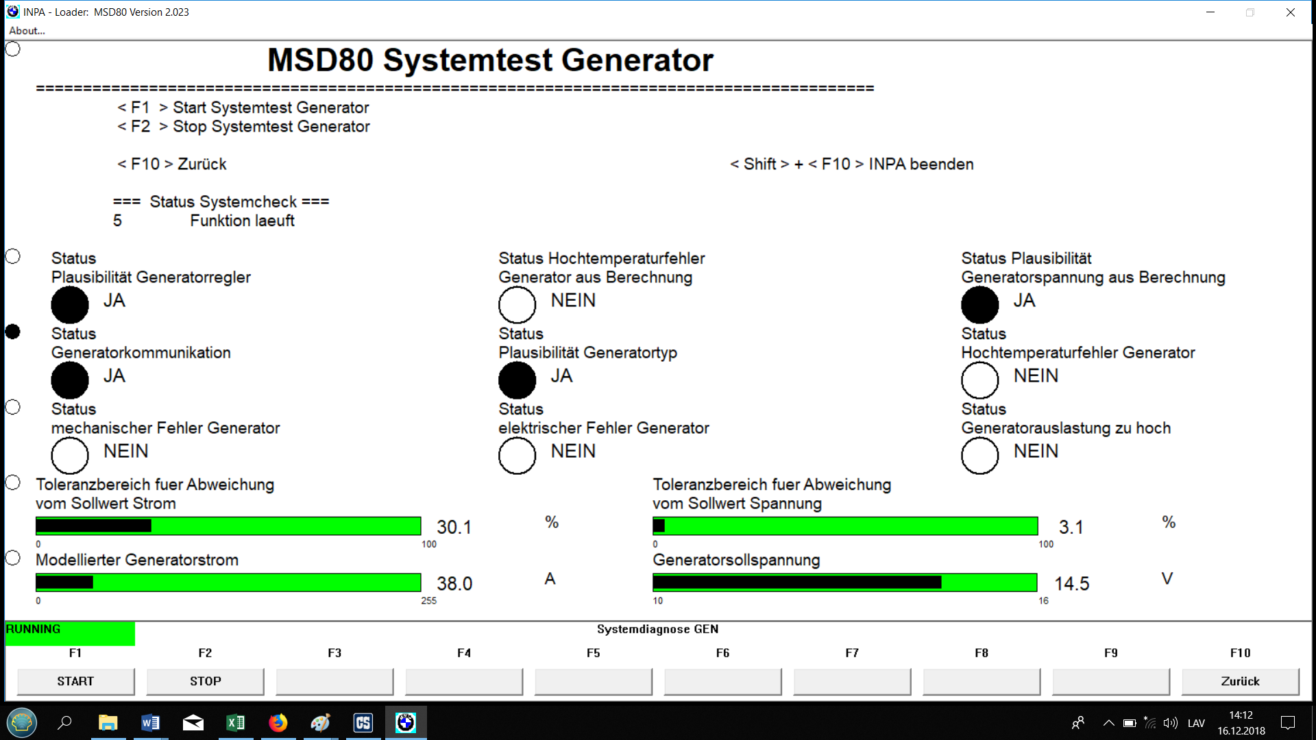 d) connect INPA, open test menu of alternator ../F6/F2/F1.