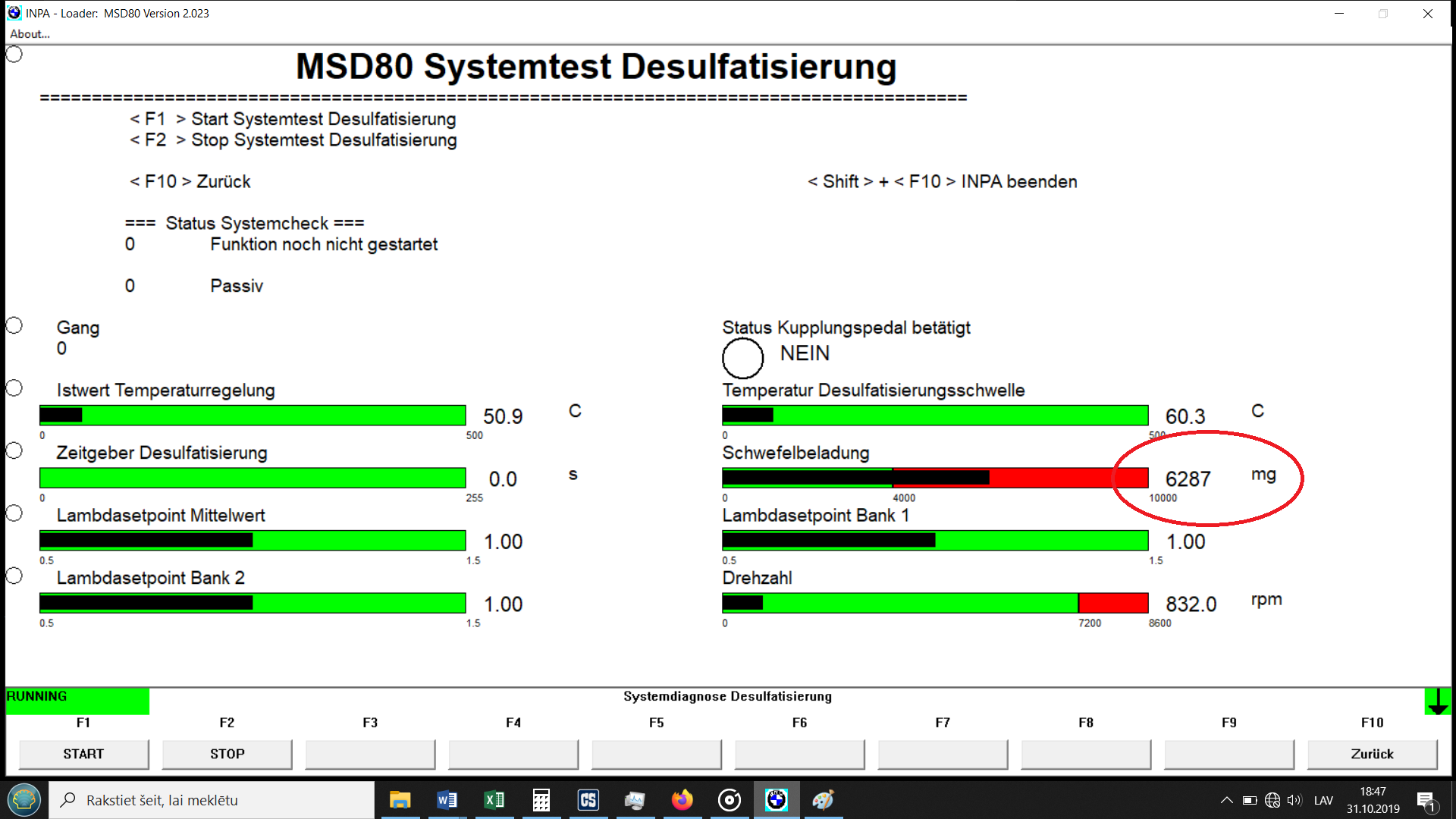 Nuance, which has to be taken into account: if the contamination of the NOx catalytic converter reaches over the red line (4000mg), the NOx sensor can not be turned in the Online mode:
