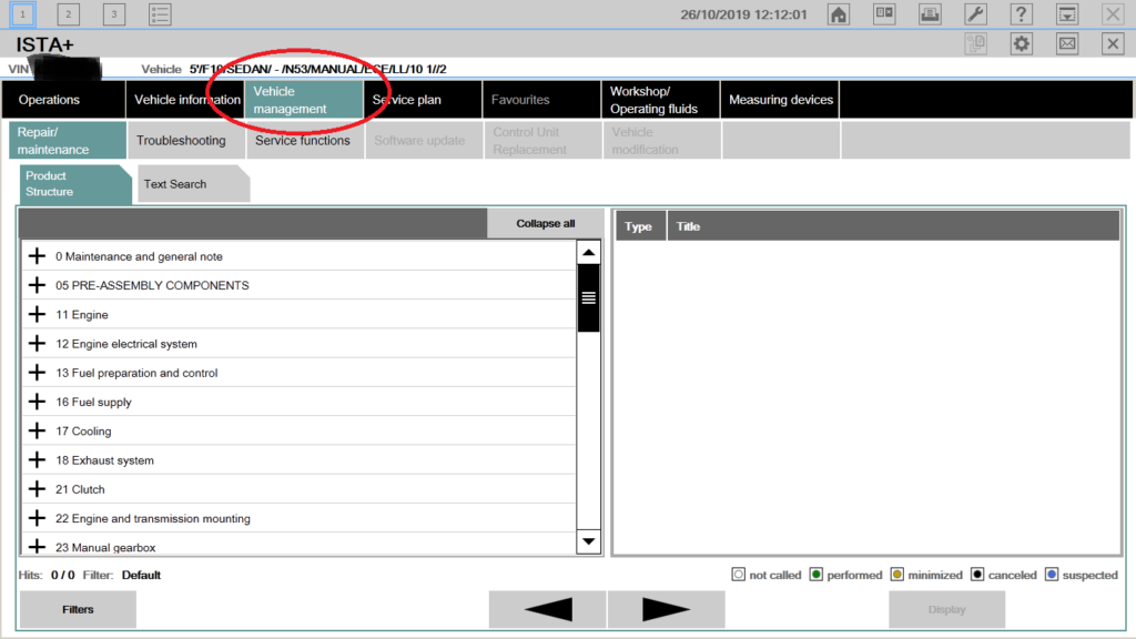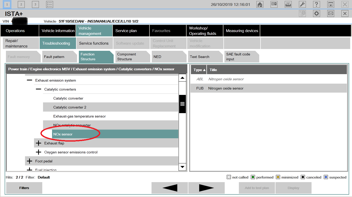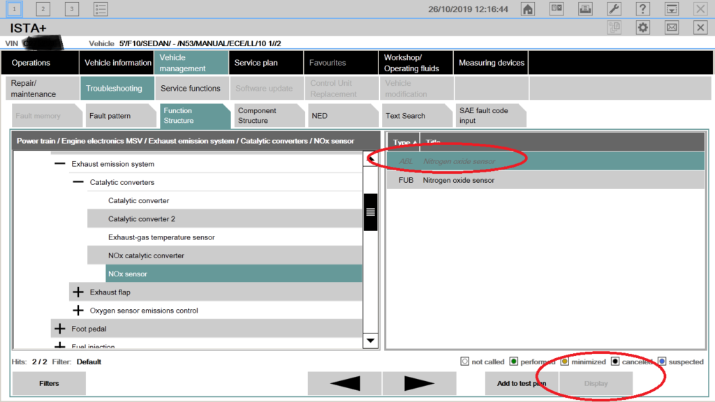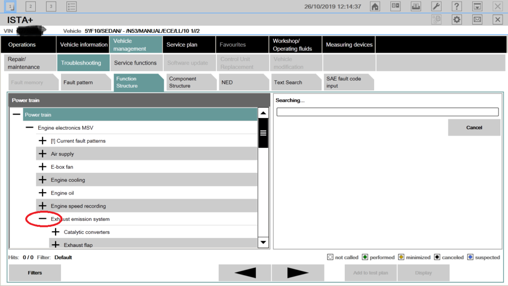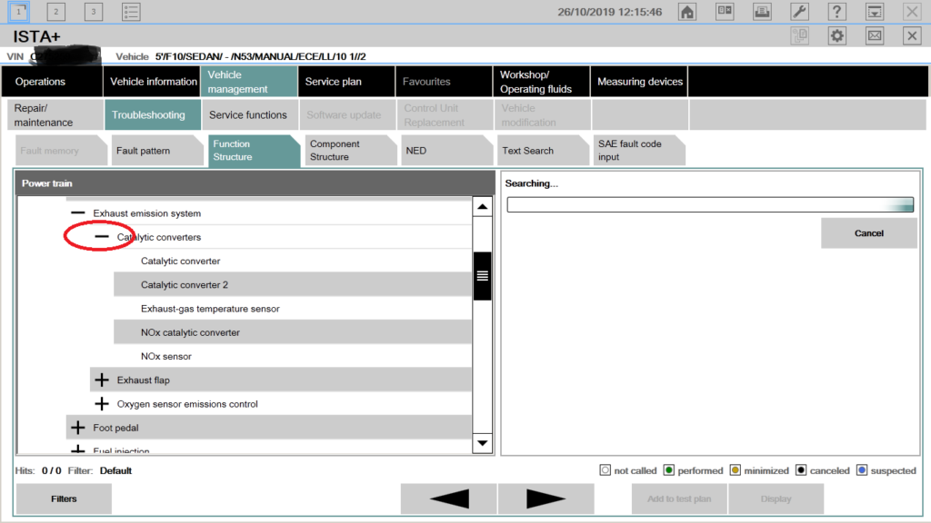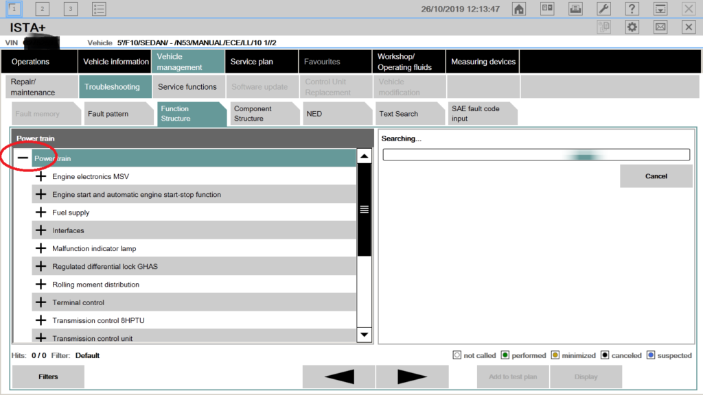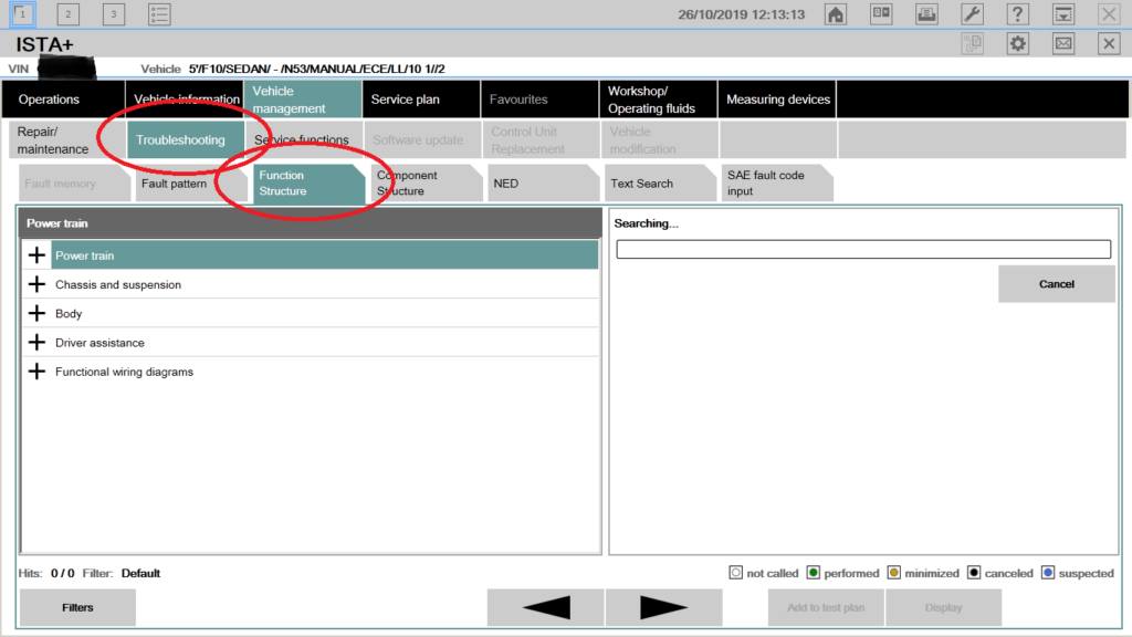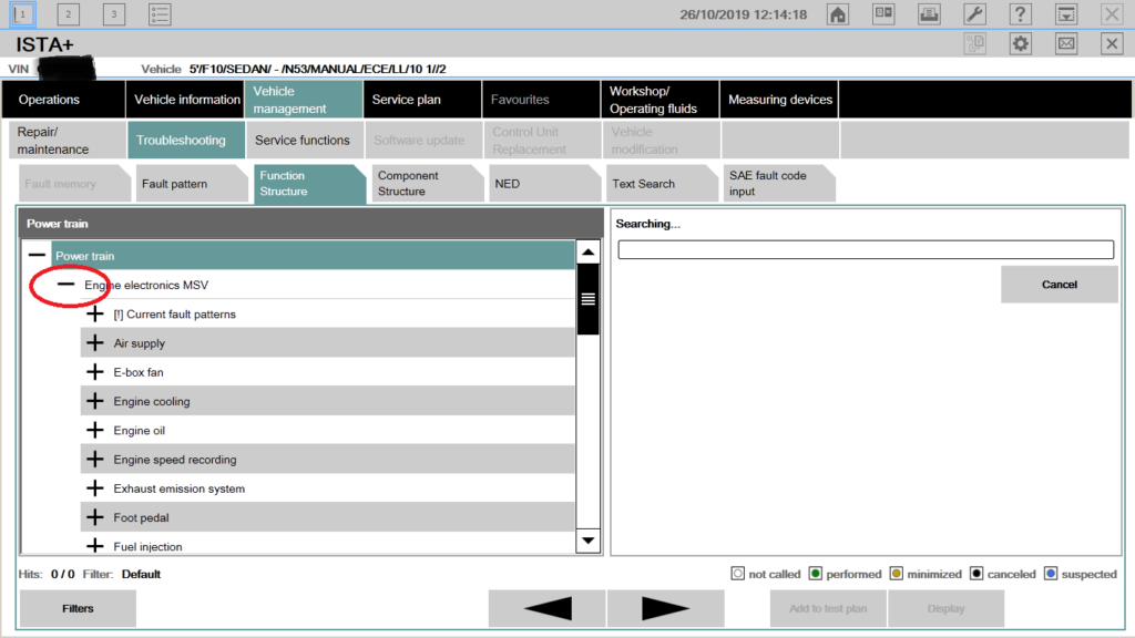 1. Start new session in ISTA D/+, perform the identification of vehicle and a test: