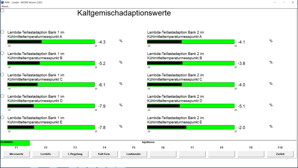 With the engine on, following data are added (according to RPM, load etc.): bank data of LTFT to current performance mode.