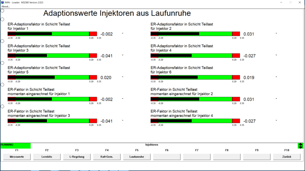 With this moment, the “impact” of data of new injector is over. Benefit (as already mentioned before) – quicker adaptations and more even running of the engine directly after registering the injector. But in long term it has no meaning, are the injectors registered or not! The main requirement – the coding data has to be true, it means, the control-sum of the has to be appropriate.