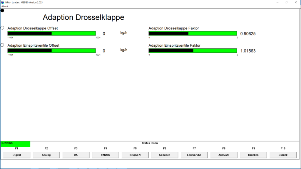 Note: in Stratified charge, only multiplicative adaptation is used (and displayed), in Homogeneous mode – both multiplicative and offset type (which is called einspritzventile) adaptation.