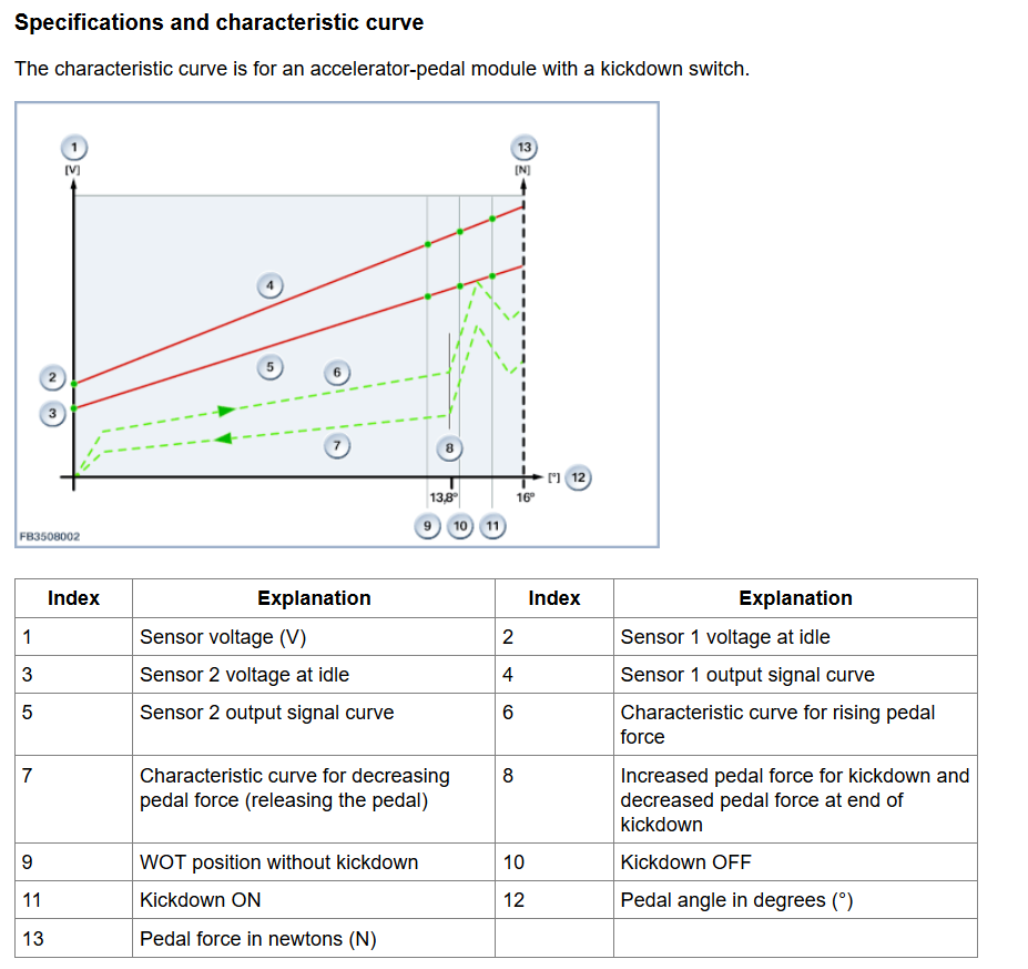 Voltage of sensor No.1: 0 .. 4V; proportional to pedal inclination angle;