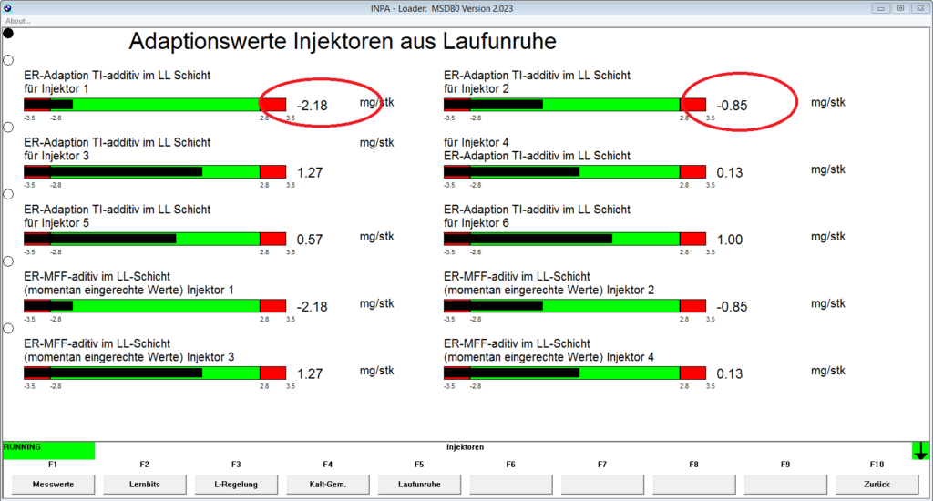 Unfortunately, the injectors of cylinders No.1 and No.2 has to be replaced.