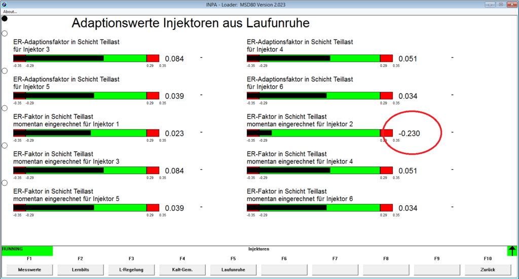 Before drawing conclusions in the current situation, let’s see other data of injectors. The good news – the (old) adaptations of the engine are deleted just now, it has started to create new ones. For some moment the engine has worked also in Stratified charge – measurements of the injectors are available.