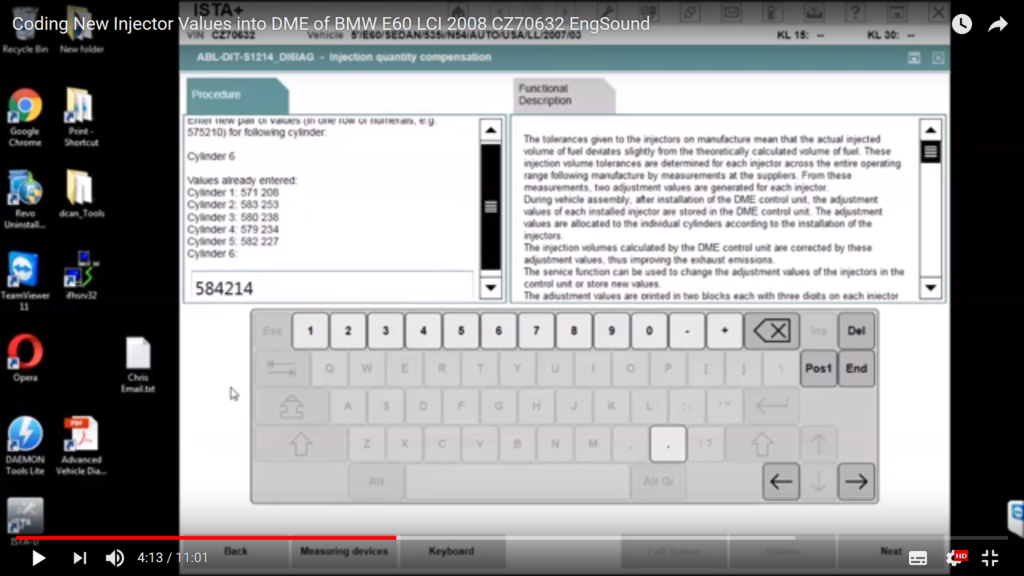 b) if you use INPA: check the entered data very carefully (INPA don’t perform an integrity check of entered data); if you encode injectors for 4 cylinder engine, use this link to define the order of cylinders;