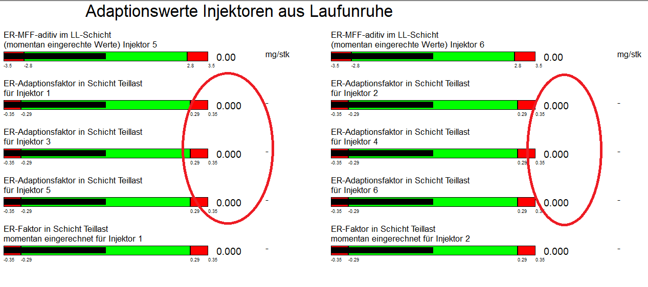 As you see, DME has not ever performed the injectors tests in Stratified charge after last deleting of the adaptations! Not in idle, not in a mode of an partial load!