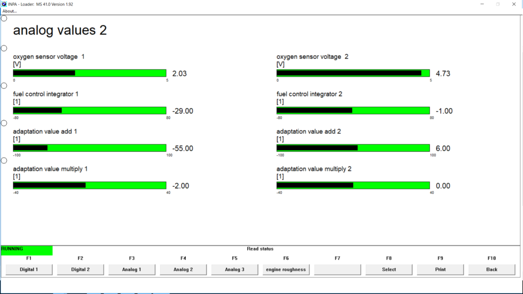 2. The representation of the voltage of the probes is more interesting. MS41, unlike the other DME’s, uses Lambda probes of titanium dioxide, which “behave” differently than ”regular” probes.