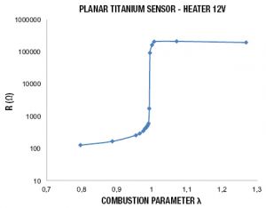 Here, the dependence of internal resistance of titanium dioxide Lambda probe vs Lambda: