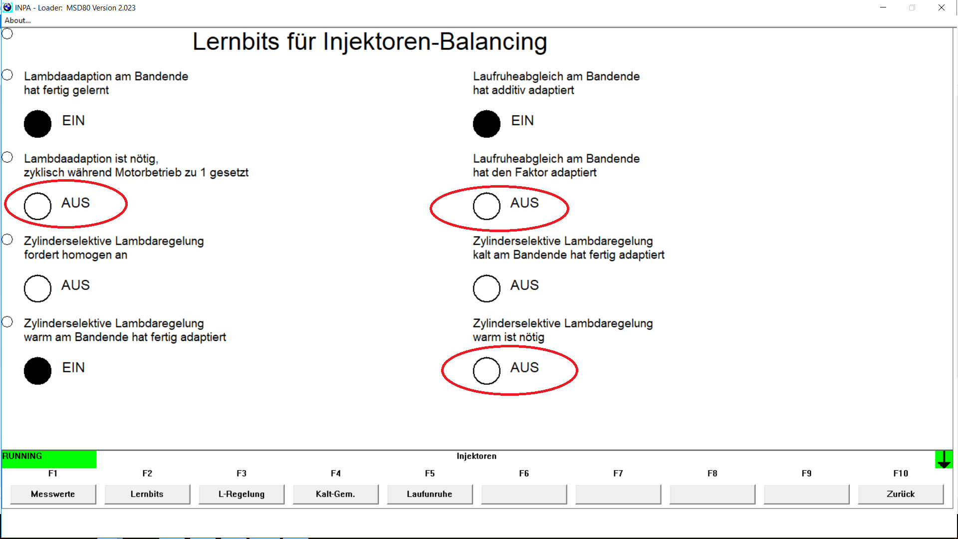 Learnbits (../F5/Shift+F6/F2) confirm, that following adaptations are not completed:
