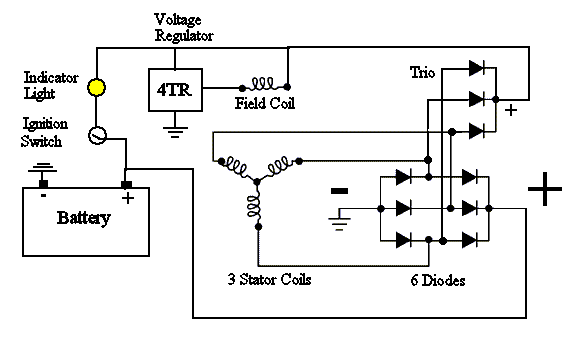 2. If the excitation output (via a shunt, as mentioned before) is not connected to the power source, the voltage regulator has no initial voltage, to start to work. Accordingly, the current doesn’t flow via the Field coil, the alternator doesn’t produce electricity. But, there is a trick. Even if the current doesn’t flow thru Field coil, the rotor (its metal core) is slightly magnetized (as called persistent magnetism – physical peculiarity) and, significantly increasing RPM of the engine, alternator manufactures a small amount of current. This current is hundred times weaker than in a regular mode, but, usually reaching the redline RPM of the engine, is enough for diode Trio group to “feed” the voltage regulator, and it would be able to increase the current in Field coil. As soon the current in field coil increases at least a little, the avalanche-type process is initiated – the current, produced by the alternator, increases rapidly; the current, which via Trio can be directed to the voltage regulator, increases; the current in Field coil increases, etc. In a very short time, the alternator “turns on” and is able to supply itself till next time of starting. From this moment (when the alternator has “turned on”), the excitation connection is not necessary – it performs only indication function (regarding charging problems).
