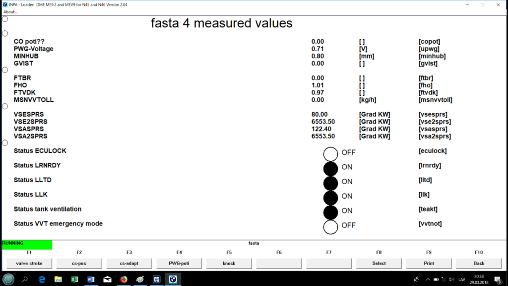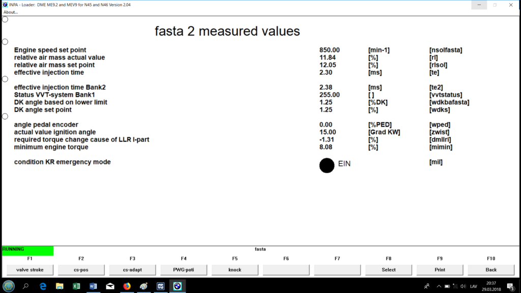 VANOS (unlike the Siemens concept, where VANOS is active above 800 .. 1000 RPM) is active also in idle, which means, that this knot can be the cause of uneven idle. Good news – PWM actuator values can be seen in VANOS menu. Normal jittering is +/-5%. In case of increased jittering – obviously, the solenoid(s) has to be cleaned or replaced.