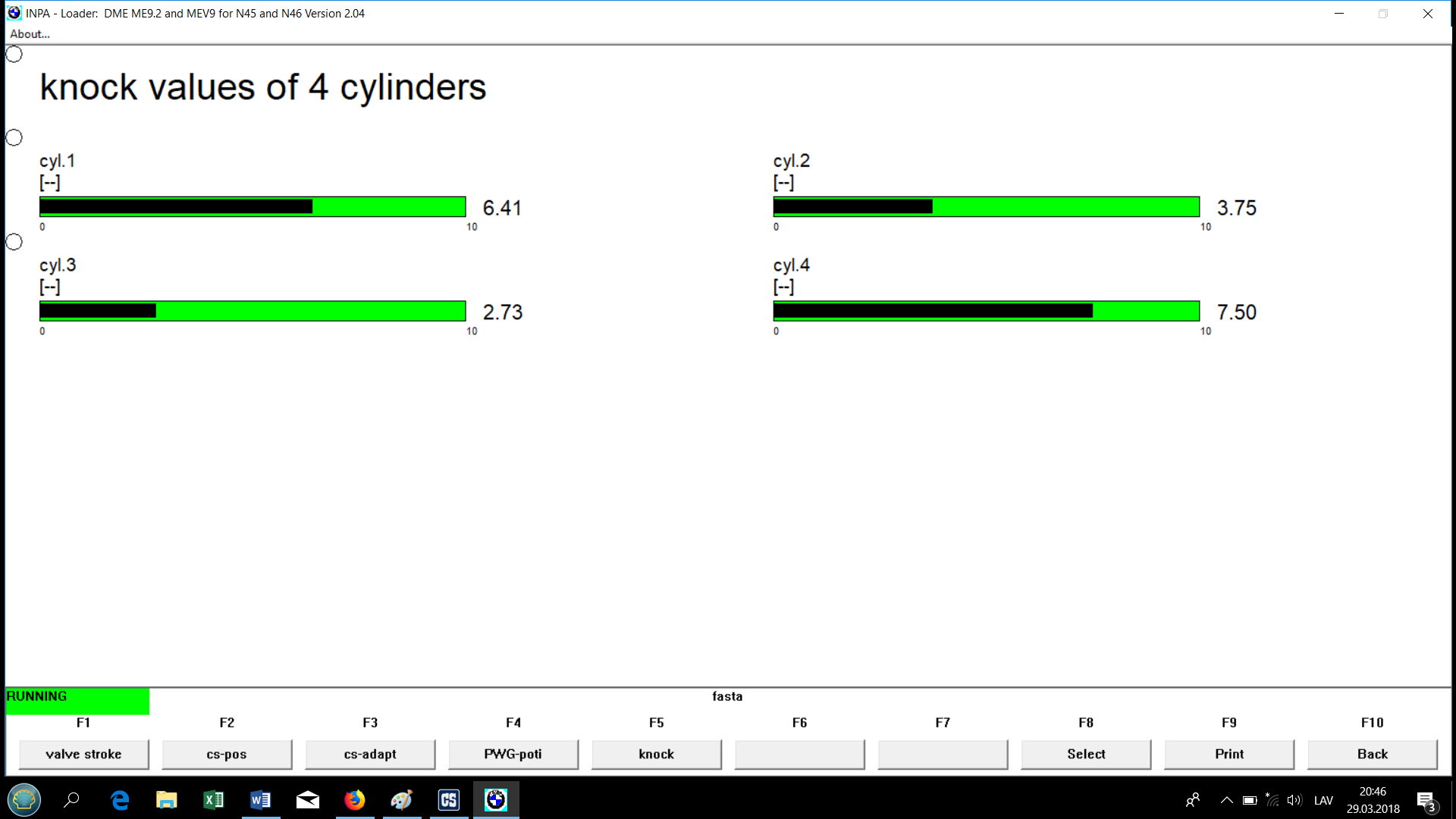 VANOS (unlike the Siemens concept, where VANOS is active above 800 .. 1000 RPM) is active also in idle, which means, that this knot can be the cause of uneven idle. Good news – PWM actuator values can be seen in VANOS menu. Normal jittering is +/-5%. In case of increased jittering – obviously, the solenoid(s) has to be cleaned or replaced.