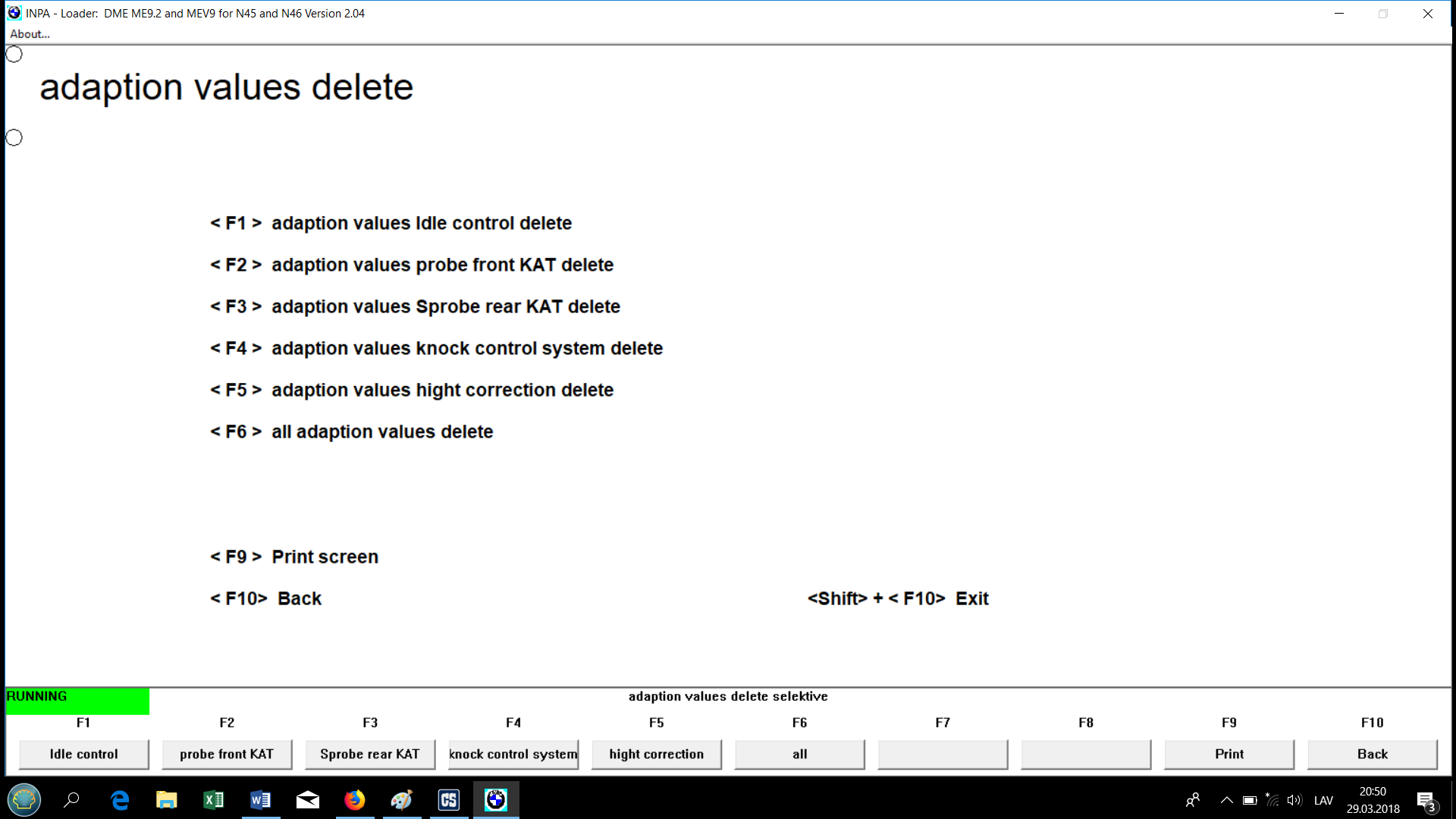 As can be seen, adaptations are divided into 6 groups, and are not very creative. It is not quite clear, how to delete throttle, VANOS, Valvetronic, flywheel etc. adaptation (of course, if they really are existing).