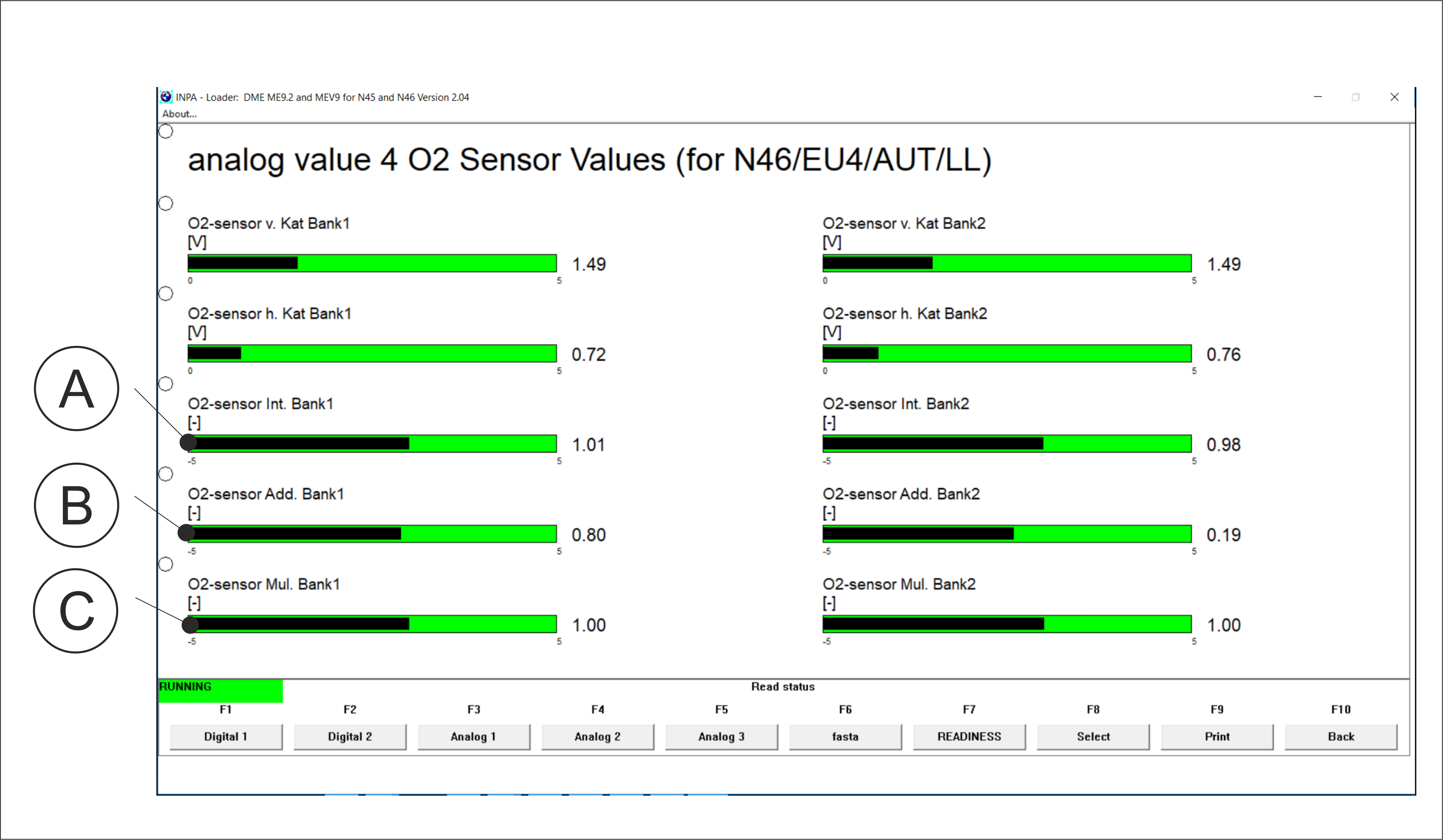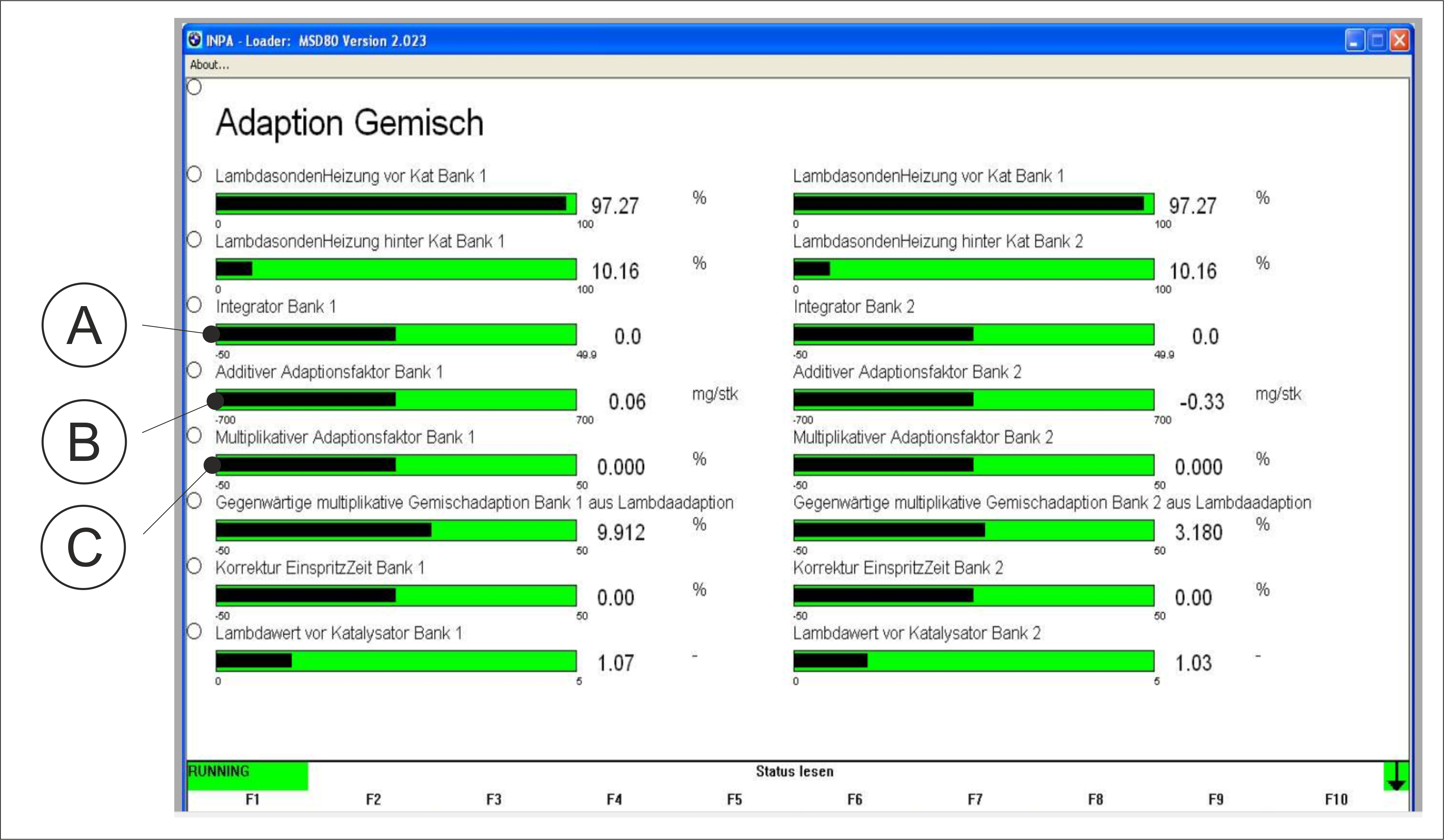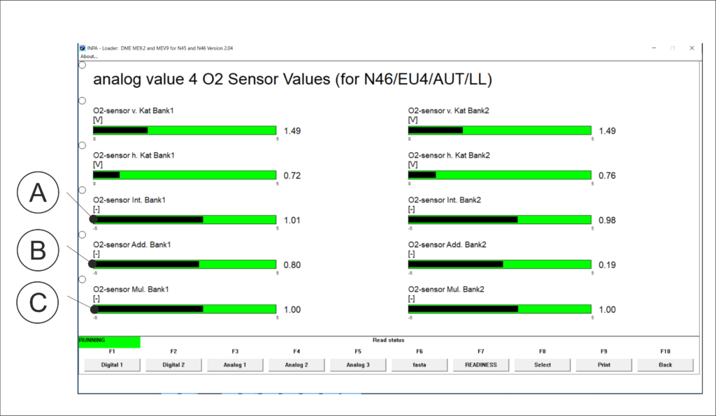 A sample of STFT and LTFT for Siemens and Bosch management units (INPA menu)