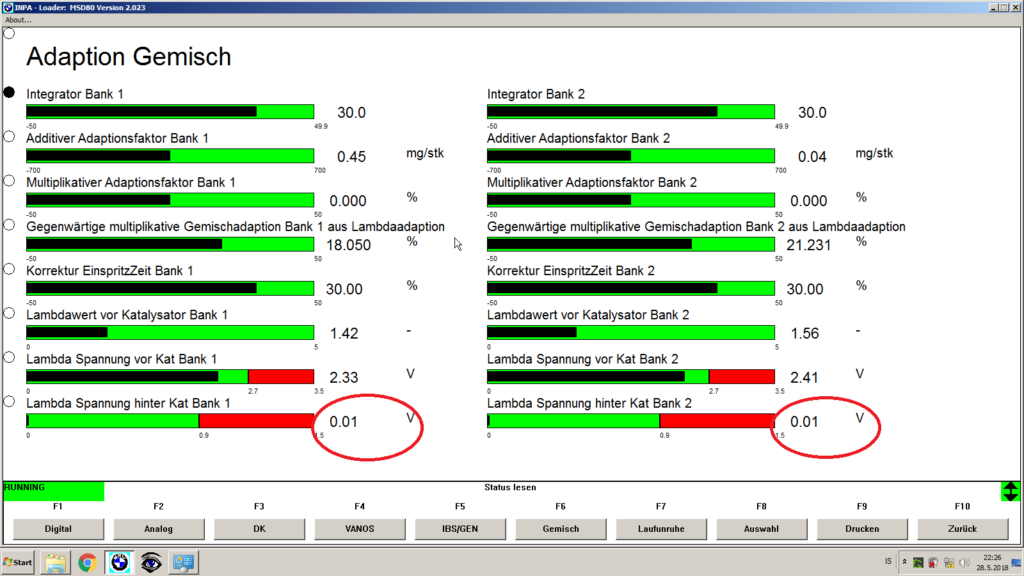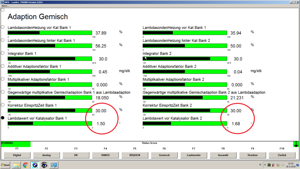 If we follow repair plans, offered by ISTA D, we can replace at least one-half of engine sensors. The workers of the service center will do exactly that. Or even more efficient – they would offer to replace, for example, all injectors. For me, it’s not clear, how the leaking injector could create a lean mixture, but if you like to pay EUR 2000 or even more – you can change the injectors.